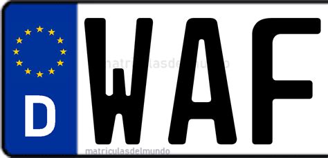 Autokennzeichen WAF haben schwarze Buchstaben auf weißem Hintergrund. Am linken Rand befindet sich das blaue Euroband mit dem EU-Sternenkranz und dem Buchstaben "D". Darunter steht die Ortskennung "WAF".